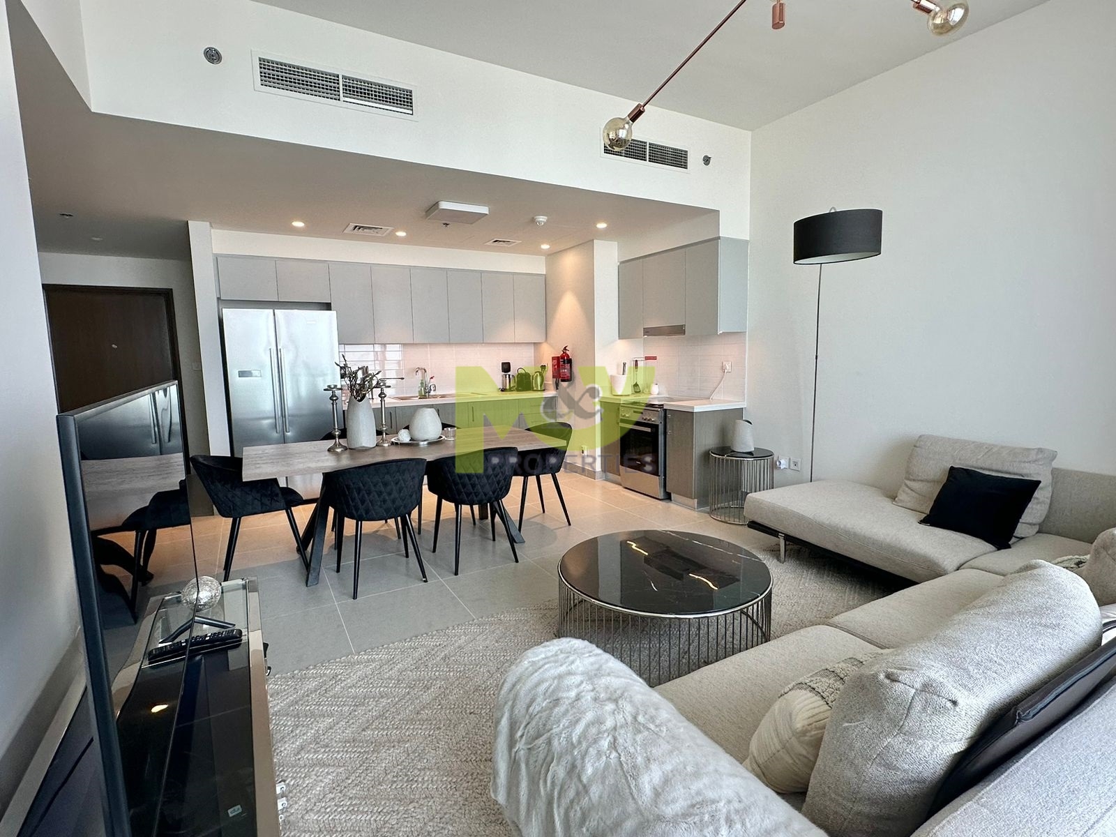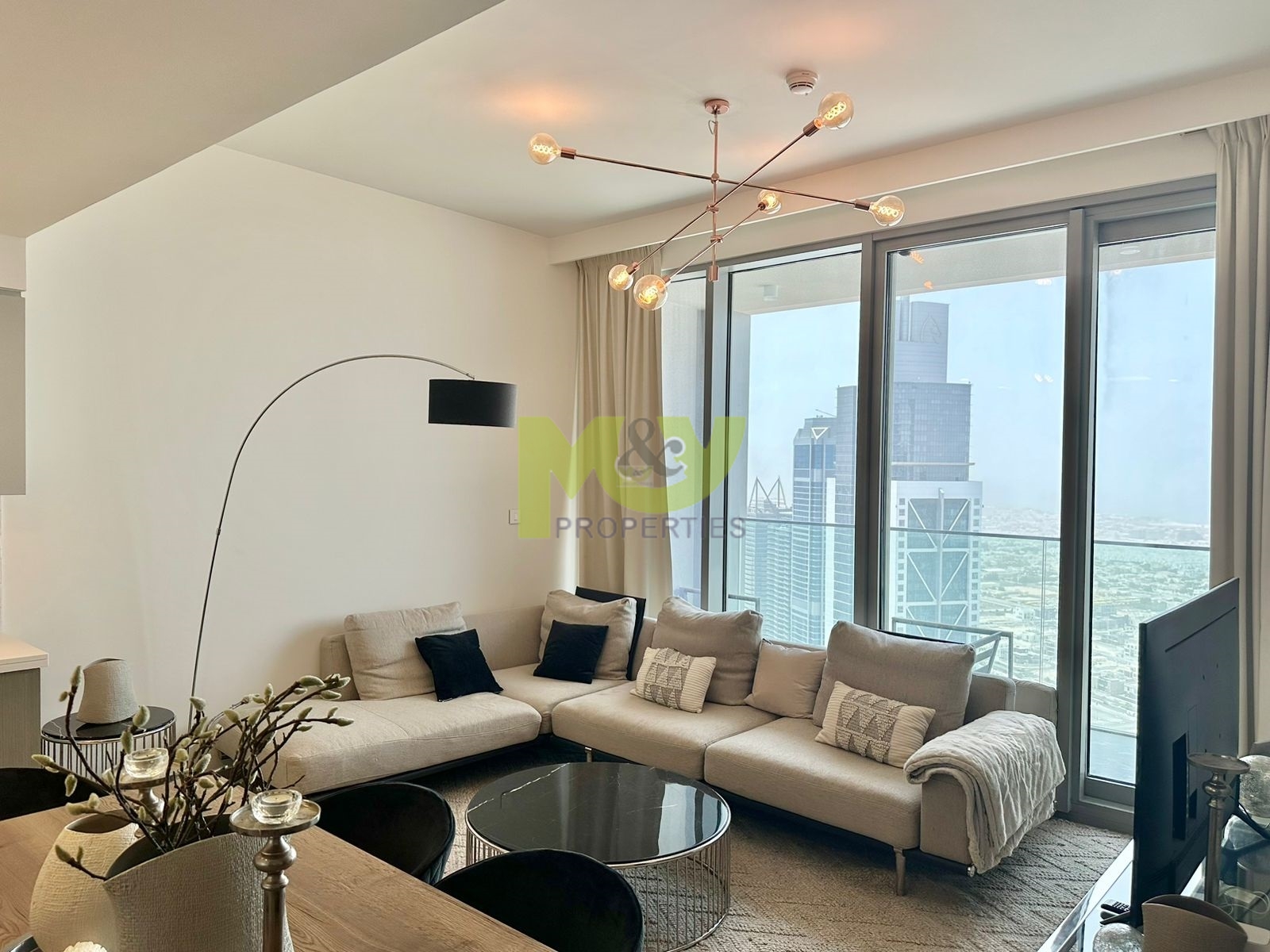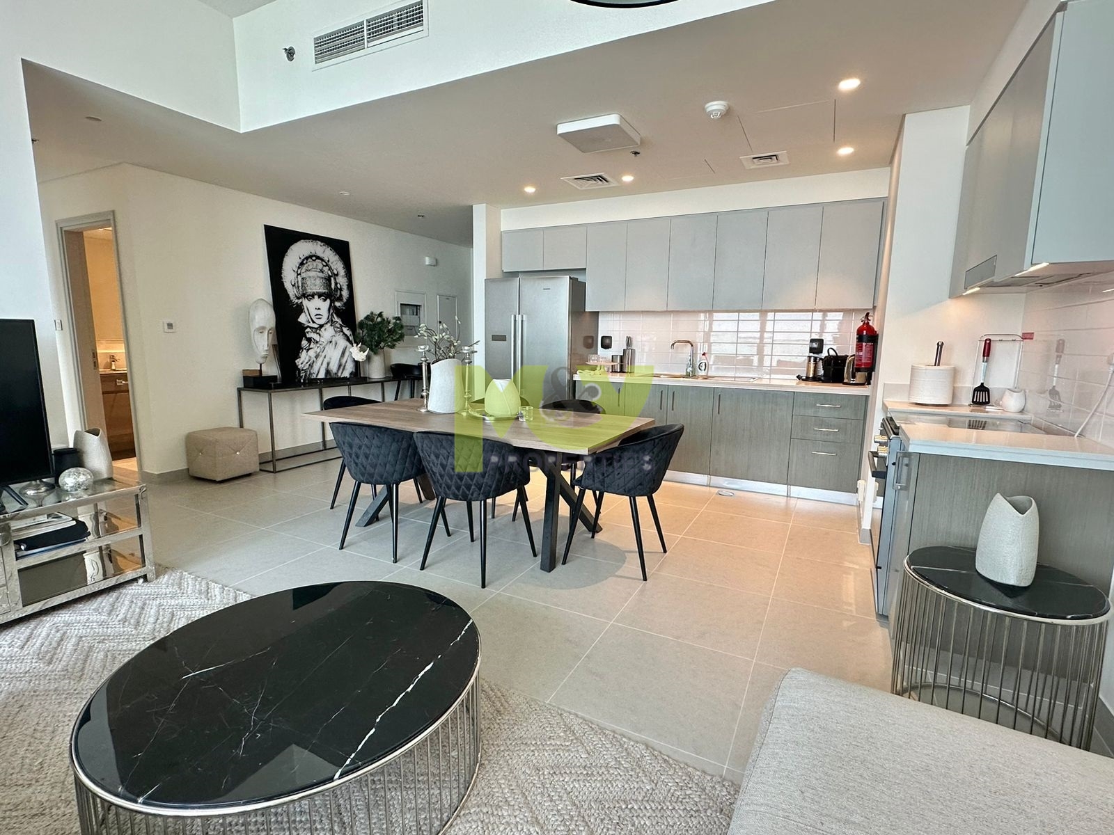 Spanning approximately 1,100 sq. ft., this high-floor apartment features a spacious living and dining area with an open-plan kitchen layout. The unit has been fully furnished with high-quality furniture and accessories from Marina Home, designed with both elegance and functionality in mind. The kitchen is fully equipped with essential appliances, cookware, crockery, and cutlery.