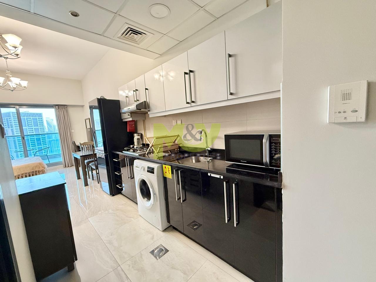 This high-floor unit spans a total of 492 sq. ft., comprising 350 sq. ft. of built-up area and a generous 142 sq. ft. shaded balcony, offering breathtaking and unobstructed views. The apartment features modern, high-quality finishes throughout and is offered fully furnished, making it an attractive turnkey investment.